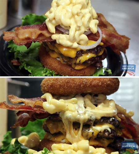 공개된 사진에는 좀비 치즈버거의 모습이 담겨 있다. 이 햄버거는 거대한 사이즈는 물론 엄청난 칼로리를 자랑한다.