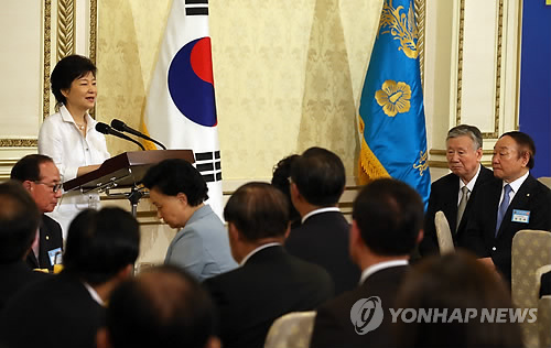박 대통령은 이날 청와대에서 제16기 민주평화통일자문회의 간부위원 등을 초청한 간담회 자리에서 “남북관계에서 반복돼 왔던 도발과 보상이라는 악순환의 고리를 끊고 일관된 원칙과 신뢰에 기초해서 진정한 한반도 평화와 번영의 토대를 쌓아야 한다”며 이같이 밝혔다.