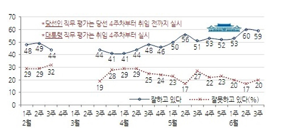 [천지일보=최유라 기자] 박근혜 대통령의 직무수행에 대한 긍정평가가 전주대비 1%p 하락한 59%를 보였다. 부정 평가는 3%p 늘었다.