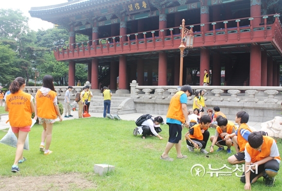 [천지일보=김예슬 기자] 사회적기업 설립을 통해 나눔을 실현하고 있는 사단법인 미래(이사장 김한수)가 22일 서울시 종로구 보신각에서 ‘순국선열과 6.25 참전 전사자를 위한 보신각 타종식’을 개최한 가운데 본격적인 행사에 앞서 참석자들이 주변을 청소하고 있다.