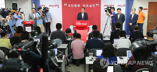 새누리당 황우여 대표는 28일 오전 여의도 당사에서 긴급 기자회견을 열어 “여야 한목소리로 NLL 수호 의지가 변함없음을 국민 앞에 밝히면 북한도 이 문제를 갖고 무슨 합의가 있었다는 이야기를 못 할 것”이라며 “우리 영토에 대한 확고한 의지를 담은 여야 공동선언문을 만들자”고 말했다.