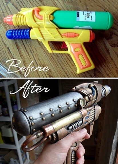 이는 장난감 물총에 장신구와 은색 스프레이 등으로 ‘메이크업’을 하자 실제 총과 흡사한 느낌으로 변신한 것으로 알려져 놀라움을 주고 있다.