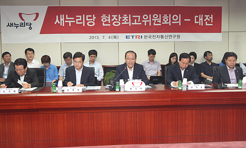 4일 오전 대전에서 새누리당과 민주당은 이 같은 주제로 각각 최고위원회의와 기자 간담회를 열었으며 신동ㆍ둔곡지구 과학벨트 예정지를 방문해 현황과 함께 주민들의 의견을 청취하기도 했다.
