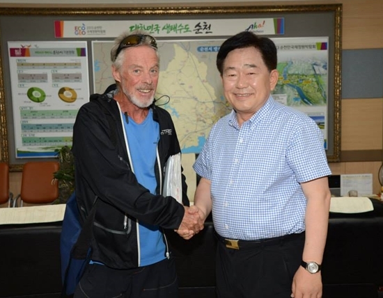 조충훈 시장은 “세계 5대 연안습지 중 하나인 순천만을 소개하고 아름다운 도시 순천에서 멋진 추억 만들기 바란다”며 론 맥글러리 씨의 도전을 응원했다.