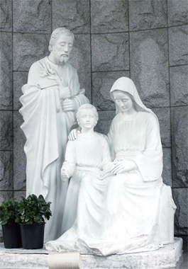 입구에서 왼쪽으로 보면 가장 먼저 성모마리아상이 눈에 띈다. 큰 소나무가 성모마리아상을 감싸 안고 있는 형태를 취하고 있다. 나무와 꽃으로 둘러싸여 있는 마리아상은 어머니처럼 푸근하다. 마리아상으로 가는 동그란 돌계단이 앙증맞은 모양새다. 그 앞에는 신자들이 놓은 것으로 보이는 장미꽃 한 다발이 눈에 들어왔다. 신자들의 간절한 마음이 담겨 있다.