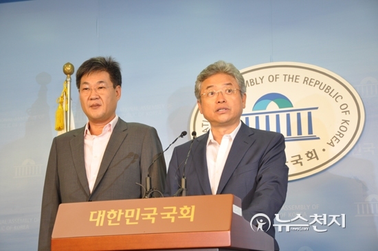 [천지일보=유영선 기자] 국가정보원의 댓글 의혹사건 국정조사 특위의 위원인 새누리당 정문헌·이철우 의원이 9일 오전 국회 정론관에서 기자회견을 열고 국정조사 특위 위원직의 사퇴 의사를 밝히고 있다.