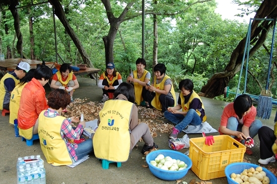 이번 봉사활동에는 교육과정과장을 비롯한 직원 23명이 참석해 제초작업, 식사준비, 생활필수품 및 간식 전달하는 등 더불어 사는 사회분위기를 조성하고 소외 계층과 일체감을 형성하기 위해 동참했다.
