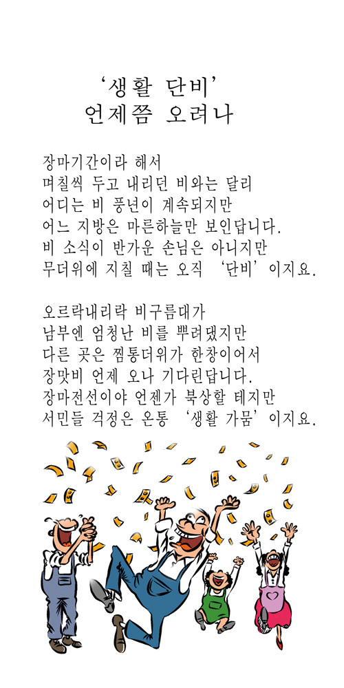 이전 기사보기 다음 기사보기 [시사카툰|천지풍경] ‘생활 단비’ 언제쯤 오려나 바로가기 복사하기 본문 글씨 줄이기 본문 글씨 키우기 스크롤 이동 상태바 [시사카툰|천지풍경] ‘생활 단비’ 언제쯤 오려나 천지풍경 입력 2013.07.09 16:40 수정 2014.01.11 13:31 기자명 천지일보 newscj@newscj.com 페이스북(으)로 기사보내기 트위터(으)로 기사보내기 카카오톡(으)로 기사보내기 텔레그램(으)로 기사보내기 URL복사(으)로 기사보내기 바로가기 기사스크랩하기 다른 공유 찾기 본문 글씨 줄이기 가 본문 글씨 키우기 이 기사를 공유합니다 페이스북(으)로 기사보내기 트위터(으)로 기사보내기 카카오톡(으)로 기사보내기 텔레그램(으)로 기사보내기 URL복사(으)로 기사보내기 닫기 글 정라곤 시인 | 그림 김진호 화백 천지일보는 24시간 여러분의 제보를 기다립니다. 천지일보 카톡 1644-7533 newscj@newscj.com 제보하기 천지일보 newscj@newscj.com 다른 기사 보기 관련기사 [시사카툰|천지풍경] 대통령님께 호소합니다 [시사카툰|천지풍경] 연예인과 돈가스 [시사카툰|천지풍경] 꽃 필 때 눈이 오더니 [시사카툰|천지풍경] 혈세관광 나선 의원들 [시사카툰|천지풍경] 부엉새도 울었다오 [천지일보 시론] 역사를 통해 본 오늘날 한반도의 현실 [시사카툰|천지풍경] 남양유업의 횡포 [시사카툰|천지풍경] 시민 여러분! 성공했습니다 [시사카툰|천지풍경] 스타의 호화 예식 [시사카툰|천지풍경] 돌아온 ‘채 천재’ [시사카툰|천지풍경] 폭염에 시달리다 저작권자 © 천지일보 무단전재 및 재배포 금지 개의 댓글 삭제기준 회원로그인 작성자 비밀번호 댓글 내용입력 댓글 정렬 최신순 추천순 답글순 BEST댓글 BEST 댓글 답글과 추천수를 합산하여 자동으로 노출됩니다. 닫기 더보기 댓글삭제 삭제한 댓글은 다시 복구할 수 없습니다. 그래도 삭제하시겠습니까? 비밀번호 닫기 댓글수정 댓글 수정은 작성 후 1분내에만 가능합니다. 본문 / 400 비밀번호 닫기 내 댓글 모음 닫기