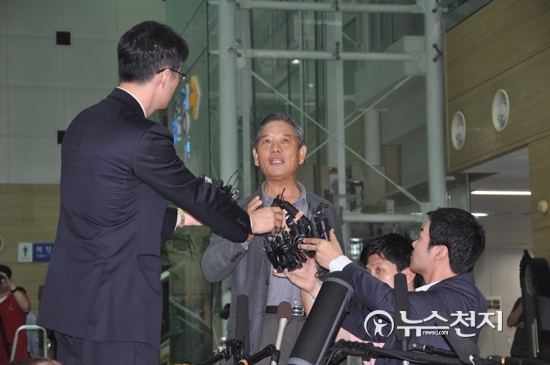 [천지일보=유영선 기자] 남북 후속 실무회담과 개성공단 입주기업인들의 방북이 진행되는 10일, 개성공단 정상화 촉구 비상대책위원회 김학권 공동위원장이 경기도 파주시 도라산 남북출입사무소에 도착해 기자회견을 하고 있다.