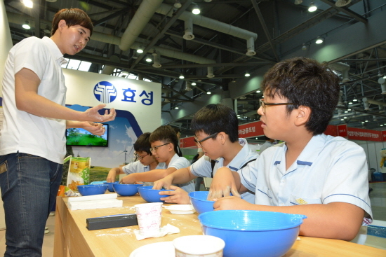 효성은 이번 박람회에서 다양한 프로그램을 운영해 학생들의 관심을 이끌었다. 오·육각형의 탄소구조를 가진 축구공 모양의 탄소 모형(풀러렌, Fullerene) 만들기, 초경량 자전거 프레임 등 탄소섬유가 적용된 제품 관람, 자전거 발전으로 믹서기를 돌려 바나나주스 만들기 등을 통해 학생들의 탄소섬유∙친환경 에너지에 대한 이해를 도왔다.