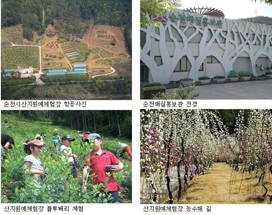 산지 원예체험장은 7만㎡ 면적에 매실홍보관을 비롯해 매실, 단감, 블루베리, 포도 등 10종의 과수원, 능수매길, 생태공원, 선인장전시관 등이 조성돼 있다.