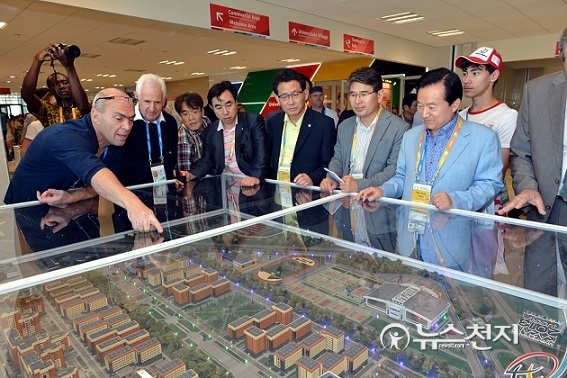 [천지일보 광주=이지수 기자] 강운태 광주시장은 15일 오전(현지시간) 카잔 유니버시아드대회 선수촌을 방문했다.