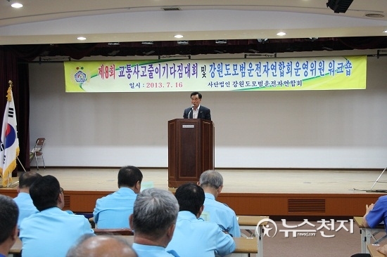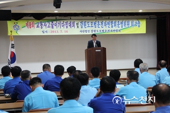 [천지일보 강원=이현복 기자] (사)강원도모범운전자연합회(회장 심상하)는 16일 원주시 우산동 강원도산업경제진흥원 6층 대회의실에서 도내 교통사고줄이기다짐대회 및 강원도범운전자합회운영위원 워크숍을 개최했다.