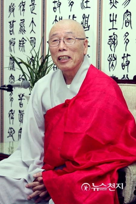 [천지일보=박준성 기자] 한국불교태고종 제25대 신임 총무원장으로 제주도 수정사 주지 도산스님이 선출됐다. 도산스님은 18일 서울 사간동 한국불교전승관 1층 대회의실에서 치러진 신임 총무원장 선거에서 146명의 선거인단 가운데 68명의 지지를 얻어 압도적인 표 차이로 1위를 차지했다. 신임 총무원장 도산스님이 기자회견 자리에서 당선소감과 향후 종단 운영방향을 설명하고 있다.