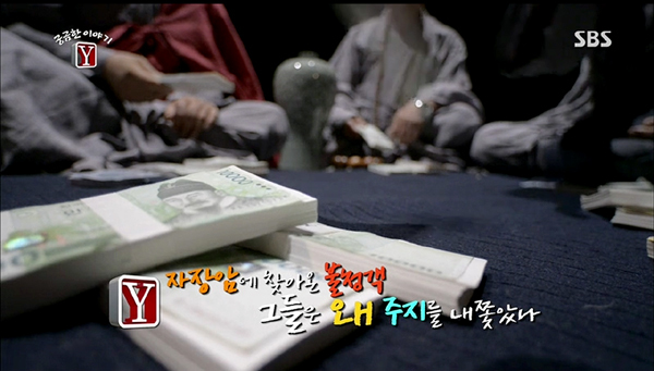 이날 방송에는 지난해 사회적 파장을 일으킨 ‘백양사 도박사건’의 동영상과 밀양 표충사 토지 불법 매각 사건, 장주스님의 주장을 토대로 스님들의 도박 모습을 재현한 영상이 방영됐다.
