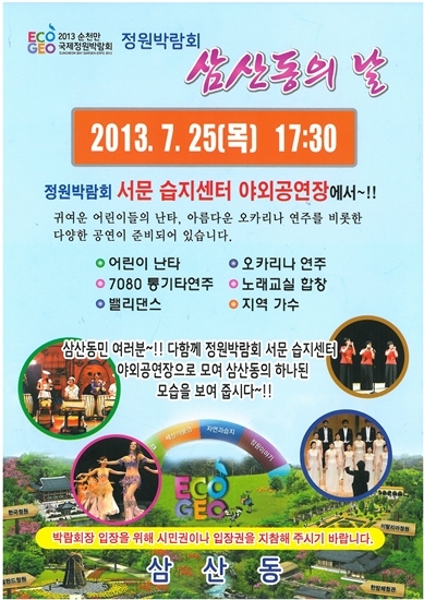 [천지일보=김미정 기자] 순천시 삼산동은 오는 25일 정원박람회장에서 ‘삼산동의 날’을 개최한다.