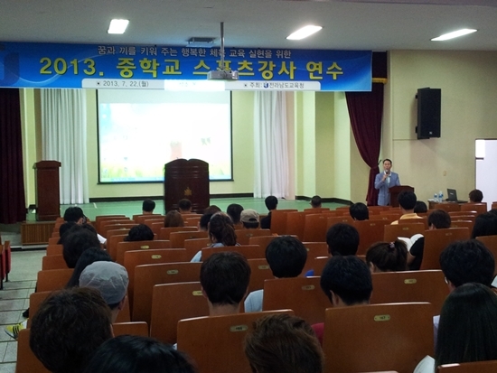 [천지일보 전남=백형순 기자] 전라남도교육청(교육감 장만채)은 ‘중학교 학교스포츠클럽 활동’ 시간 확대에 따른 내실화 방안에 따라 중학교 스포츠 강사를 확대 배치해 서부권은 목포고등학교, 동부권은 순천대학교에서 지난 22일부터 이틀간 연수를 개최했다고 밝혔다.