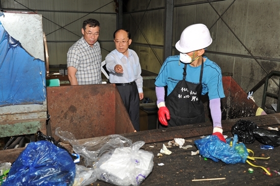 대양동에 위치한 음식물자원화시설 점검에 나선 정 시장은 시내 반입되는 1일 40톤가량의 음식물 쓰레기의 퇴비화 전 과정을 직접 확인하고 최근 바이오옥시전(산소발생장치) 설치로 악취가 많이 개선된 점을 높이 평가했다.