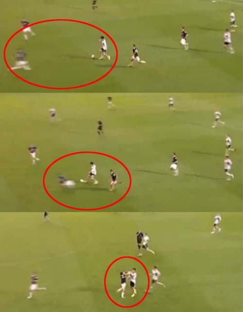 이청용이 동료의 패스를 받고 빠른 드리블로 역습에 나선 순간, 상대 수비수가 심한 태클을 가했다. 상대팀 리암 노블의 축구화 스터드가 이청용의 무릎을 향할 만큼 높아 아찔한 모습을 연출했다.