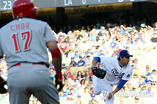 28일 오전(한국시간) 미국 캘리포니아주 로스앤젤레스 다저스스타디움에서 열린 LA다저스와 신시내티와 대결에서 선발투수로 나선 류현진이 추신수를 상대로 3차례 만나 볼넷 1개만 내주고 삼진 1개를 포함, 무안타로 막았다.