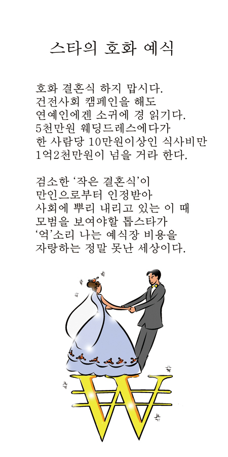 이전 기사보기 다음 기사보기 [시사카툰|천지풍경] 스타의 호화 예식 바로가기 복사하기 본문 글씨 줄이기 본문 글씨 키우기 스크롤 이동 상태바 [시사카툰|천지풍경] 스타의 호화 예식 천지풍경 입력 2013.07.30 16:27 수정 2014.01.11 13:32 기자명 천지일보 newscj@newscj.com 페이스북(으)로 기사보내기 트위터(으)로 기사보내기 카카오톡(으)로 기사보내기 텔레그램(으)로 기사보내기 URL복사(으)로 기사보내기 바로가기 기사스크랩하기 다른 공유 찾기 본문 글씨 줄이기 가 본문 글씨 키우기 이 기사를 공유합니다 페이스북(으)로 기사보내기 트위터(으)로 기사보내기 카카오톡(으)로 기사보내기 텔레그램(으)로 기사보내기 URL복사(으)로 기사보내기 닫기 글 정라곤 시인 | 그림 김진호 화백 천지일보는 24시간 여러분의 제보를 기다립니다. 천지일보 카톡 1644-7533 newscj@newscj.com 제보하기 천지일보 newscj@newscj.com 다른 기사 보기 관련기사 [시사카툰|천지풍경] 시민 여러분! 성공했습니다 [시사카툰|천지풍경] 남양유업의 횡포 [시사카툰|천지풍경] ‘생활 단비’ 언제쯤 오려나 [시사카툰|천지풍경] 대통령님께 호소합니다 [시사카툰|천지풍경] 연예인과 돈가스 [천지일보 시론] ‘이스라엘(유대인)’의 진정한 의미 [시사카툰|천지풍경] 돌아온 ‘채 천재’ [시사카툰|천지풍경] 폭염에 시달리다 [시사카툰 | 천지풍경] 조선(造船)왕국, 골병들다 [시사카툰|천지풍경] 대학을 졸업하고서 [시사카툰|천지풍경] 상아탑의 그늘진 풍경 저작권자 © 천지일보 무단전재 및 재배포 금지 개의 댓글 삭제기준 회원로그인 작성자 비밀번호 댓글 내용입력 댓글 정렬 최신순 추천순 답글순 BEST댓글 BEST 댓글 답글과 추천수를 합산하여 자동으로 노출됩니다. 닫기 더보기 댓글삭제 삭제한 댓글은 다시 복구할 수 없습니다. 그래도 삭제하시겠습니까? 비밀번호 닫기 댓글수정 댓글 수정은 작성 후 1분내에만 가능합니다. 본문 / 400 비밀번호 닫기 내 댓글 모음 닫기