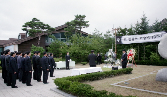 현대그룹은 이날 오전 현 회장을 비롯한 현대 임직원 38명과 북측 관계자 20여 명은 금강산 정몽헌 회장 추모비에서 공동으로 추모식을 가졌다고 전했다.