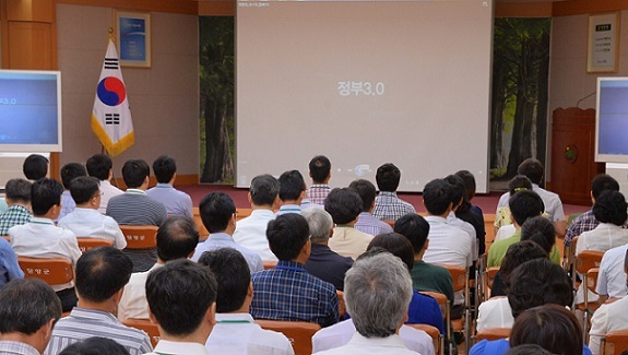 [천지일보 담양=이지수 기자] 담양군은 5일 군청 대회의실에서 전 직원을 대상으로 현 정부의 국정 철학을 이해하고 공유하기 위해 새 정부의 핵심 국정과제인 ‘정부 3.0’에 대한 홍보 영상물 시청과 자체교육을 시행했다.