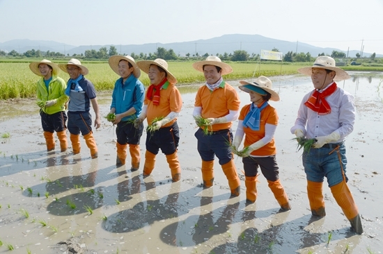 모내기 행사에는 조충훈 시장을 비롯한 이광하 순천농협장, 임종기 순천시의회 의원 등 150여 명이 참석했다.