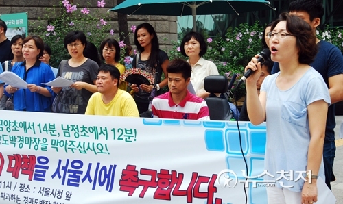 [천지일보=장수경 기자] ‘용산구 화상경마도박장 입점 지지 주민대책위’ 등이 8일 오전 서울시청 앞에서 ‘용산 화상도박장 확대·이전 지지를 위한 서울시의 적극적인 대책을 호소하는 기자회견’을 개최했다.