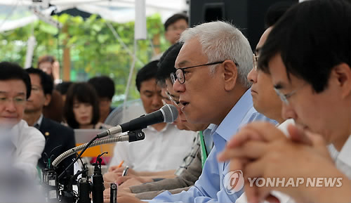 김 대표는 서울광장 천막 상황실에서 열린 확대간부회의에서 “청와대가 5자 회담을 역제안하면서 기싸움처럼 돼 버렸다”며 “형식이나 의전을 따지지 않겠다고 했더니 여야 지도부를 소집해 회의를 주재하려는 것 같다”고 지적했다.