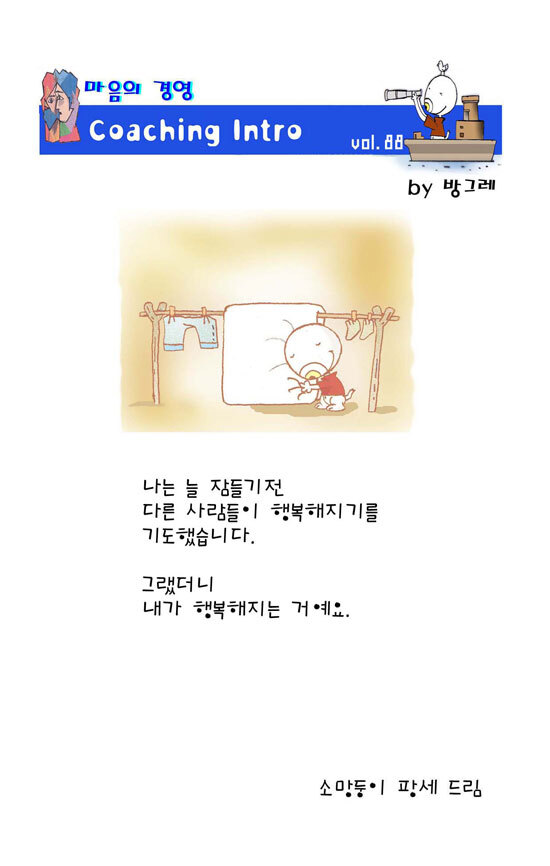 관련기사 [마음의 경영] 나는 커서 모든 사람들에게 [마음의 경영] 웃는 얼굴은 [마음의 경영] 어릴적 난 새처럼 날고 싶었어 [마음의 경영] 우리 모두가 행복해지려면 [마음의 경영] 농사일을 마치고 [마음의 경영] 내가 알고 있는 사람 중에 [마음의 경영] 나는 지금 [마음의 경영] 나 사실은 [마음의 경영] 담장은