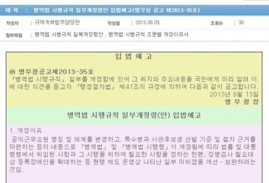 이번 병역법 시행령·시행규칙 개정안 입법예고 기간은 오는 9월 23일까지다.