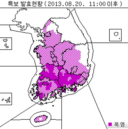 전주기상대 측은 “북태평양 고기압이 서태평양에서 예년에 비해 강하게 발달하면서 빠르게 확장해 한국과 중국, 일본 등 동아시아 지역에 폭염이 계속되고 있다”며 “한 달간 계속되던 장마도 중부지역과 북한에 집중돼 남부 지역의 폭염에 영향을 준 것으로 보인다”고 설명했다.
