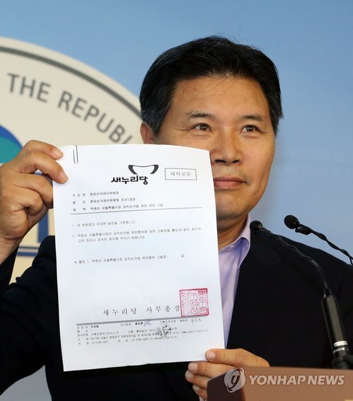 새누리당 홍문종 사무총장은 이날 오전 국회 정론관에서 기자회견을 열고 “박원순 서울 시장과 서울시 홍보 관련 책임자를 공직선거법 제86조 5항 위반 혐의로 선관위에 고발했다”고 밝혔다.