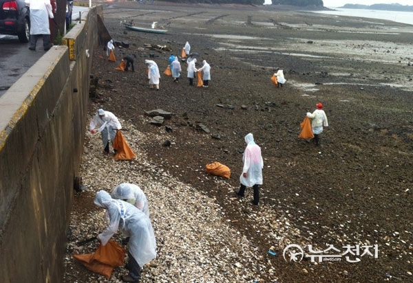 이날 충남도 해양수산국은 서산시 부석면 창리에서 허베이 스피리트호 피해지역 바다환경개선 및 피해주민과 소통강화를 위해 현장 간담회를 겸한 바닷가 정화활동을 했다.
