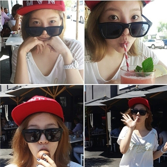 공개된 사진 속 써니는 빨간색 모자와 선글라스를 쓴 채 카메라를 응시하고 있다. 특히 써니는 주스와 삶은 계란을 먹고 있는 등 먹방 모습으로도 눈길을 끌었다.