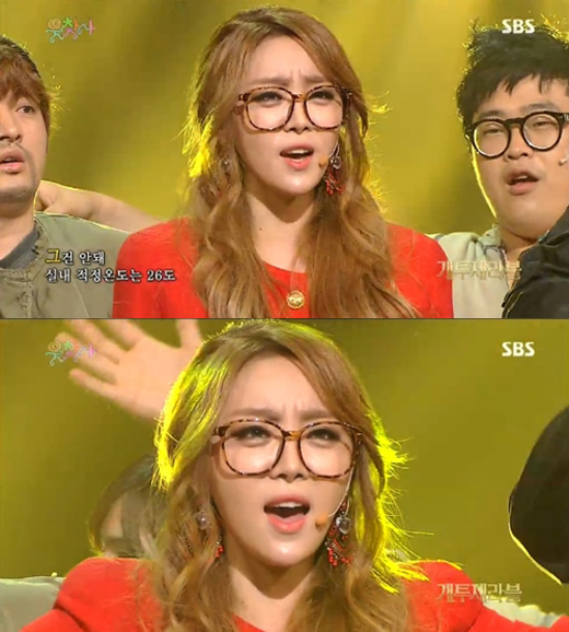 브라운아이드걸스 멤버 나르샤는 25일 방송된 SBS ‘웃음을 찾는 사람들 - 개투제라블’ 코너에 출연해 영화 ‘설국열차’ 패러디를 선보였다.