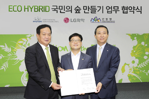 이날 협약식에는 현대차 김충호 사장, LG화학 전지사업본부 권영수 사장, 신원섭 산림청장 등이 참석해 유기적인 파트너쉽을 통해 친환경 활동에 앞장서기로 했다.