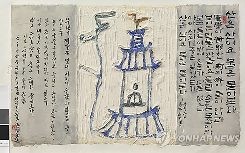 김 교수는 “이번 추모전은 불교적 상징성이 강한 회화적 이미지를 적절한 법어와 융합해 종교적 선미(禪味, 참선의 오묘한 맛)와 도덕적 교육효과가 드러날 수 있는 내용으로 작품화했다”고 말했다.