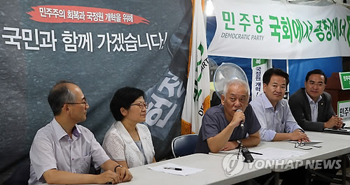 박 대통령과의 영수회담을 통해 엉킨 실타래를 풀고자 하는 민주당은 답답한 분위기다. 원내로 회군할 마땅한 명분이 없는 상황에서 장외투쟁의 카드를 접을 수 없기 때문이다. 더욱이 ‘빈손’ 회군을 할 수 없는 터라 장외투쟁을 지속한다는 방침에 무게를 실었다. 민주당 김한길 대표는 “가을에도 민주주의 회복과 국정원 개혁을 위한 국민의 함성이 광장을 넘어서 높은 하늘까지 울려 퍼질 것이라고 생각한다”고 강조했다. 박근혜 대통령의 사과와 남재준 국정원장 해임 등의 요구사항을 관철할 때까지 원내외 병행투쟁을 지속한다는 것이다.
