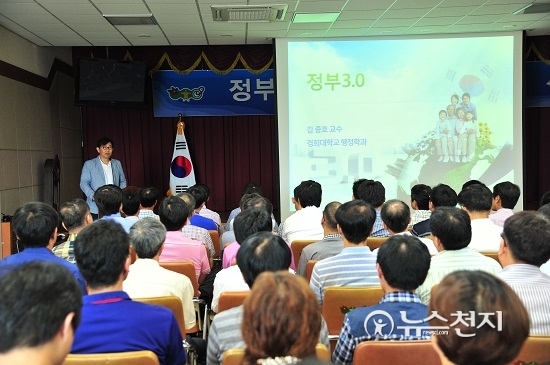 [천지일보 횡성=이현복 기자] 강원 횡성군(군수 고석용)은 지난 26일 군청 3층 대회의실에서 새로운 정부운영의 패러다임인 정부3.0의 정착을 위해전 직원을 대상으로 ‘정부3.0 특별교육’을 실시했다.