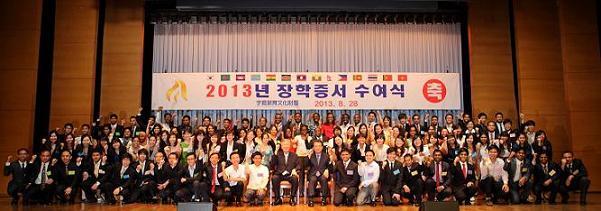 [천지일보=이현정 기자] 부영그룹 우정교육문화재단이 28일 아시아․아프리리카 13개국에서 온 유학생 103명에게 총 4억 1200만 원 규모의 장학금을 전달했다.