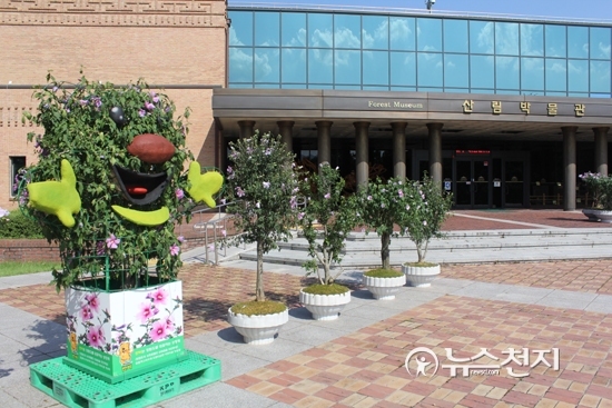 [천지일보 춘천=김성규 기자] 강원도산림개발연구원이 강원도립화목원 내 산림박물관 광장과 반비로에 무궁화 분화 및 토피어리를 이달 26일까지 전시한다.