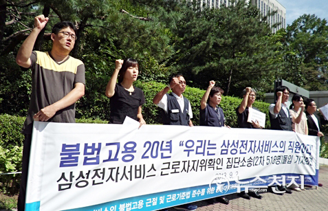 [천지일보=명승일 기자] 삼성전자서비스 협력업체 노동자 518명이 2일 “우리도 삼성전자서비스 직원”이라며 추가 소송에 들어갔다.
