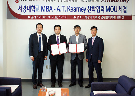 [천지일보=김성희 기자] 서강대(총장 유기풍) 경영전문대학원(원장 박영석)이 2일 마태오관에서 A.T.Kearney와의 산학협력을 위한 MOU를 체결했다.