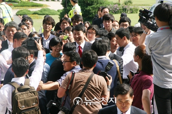 - [포토] 지지자들의 격려 속 본회의장으로 향하는 이석기 의원