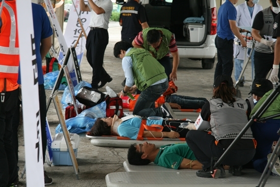 이날 훈련은 유관기관인 목포소방서, 목포경찰서, 목포시청, 목포시 보건소, 군부대, 철도사법경찰대, 연계 지정병원 등 약 180명의 인원이 참석했다.