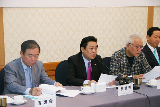 [천지일보=유영선 기자] 10일 오전 국회 본청 귀빈식당에서 민주당 참좋은지방정부위원회 주최로 무상급식·무상보육 지속을 위한 경기도 정책협의회가 열리고 있는 가운데 전병헌 원내대표가 인사말을 하고 있다.