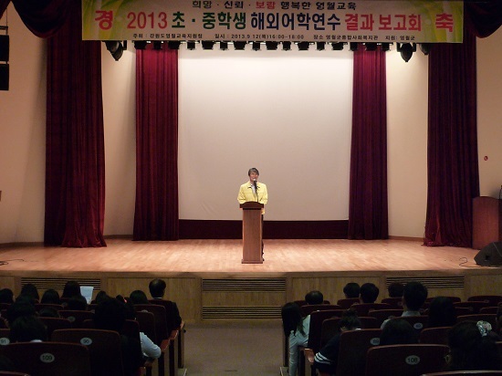 [천지일보 영월=이현복 기자] 강원도 영월지역 초·중학생 해외어학체험연수 결과보고회를 지난 12일 영월종합사회복지관에서 가졌다.