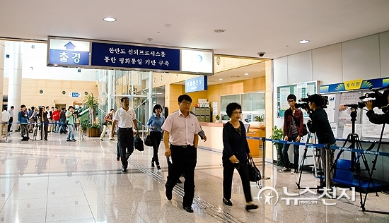 [천지일보=임문식 기자] 개성공단 입주기업 관계자들이 16일 오전 경기도 파주시 남북출입사무소(CIQ)에서 개성공단 방문에 앞서 출경심사를 받기 위해 이동하고 있다. 이날 개성공단은 북한의 일방적인 통행제한으로 가동 중단된 지 166일 만에 재가동에 들어갔다.